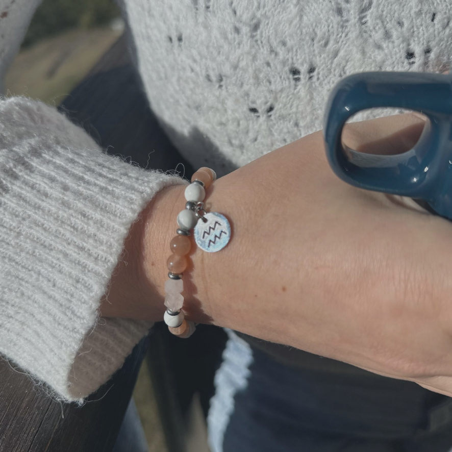 Bracelet « Douceur d'esprit » Howlite • Quartz Rose • Pierre de Soleil