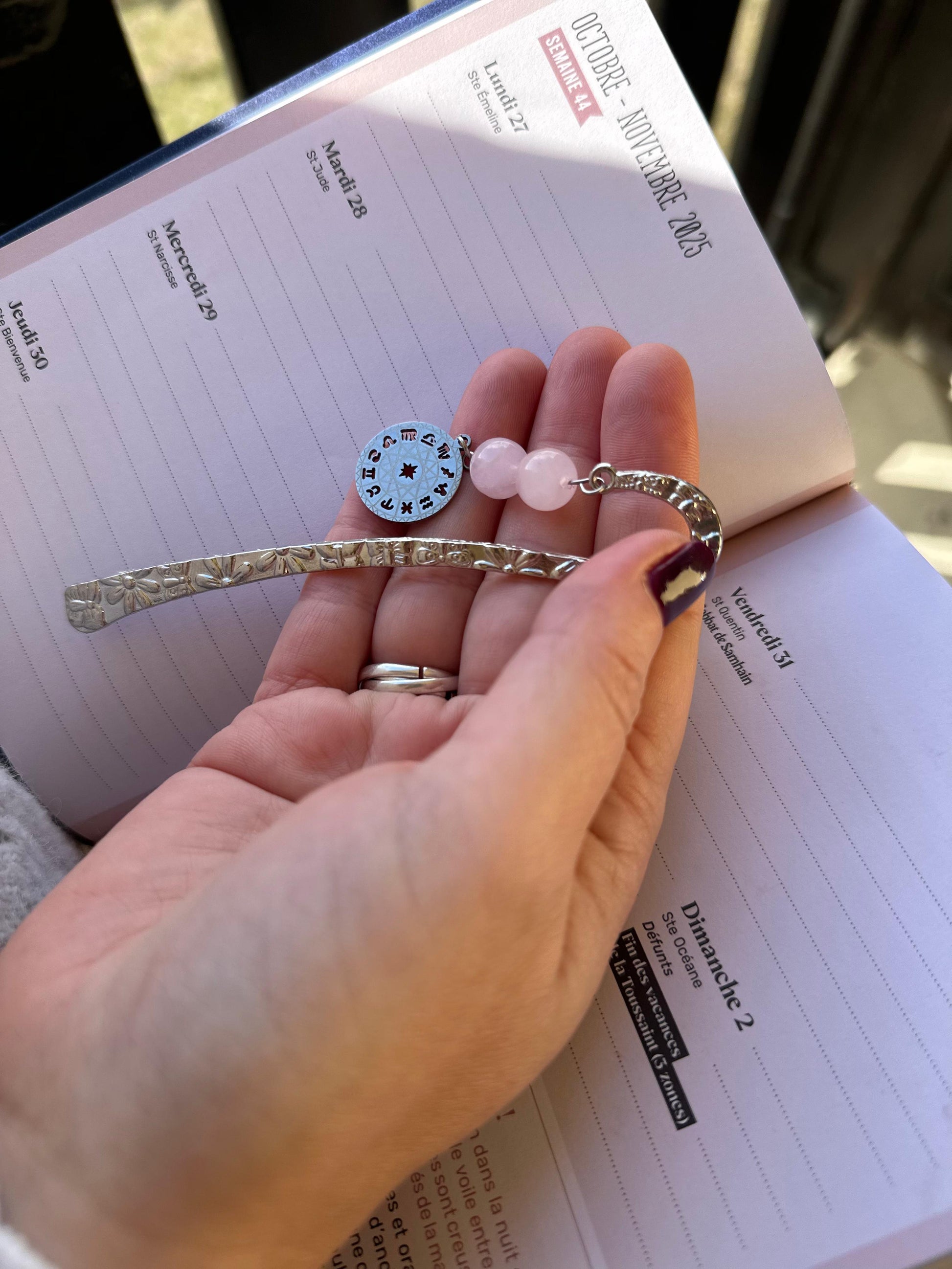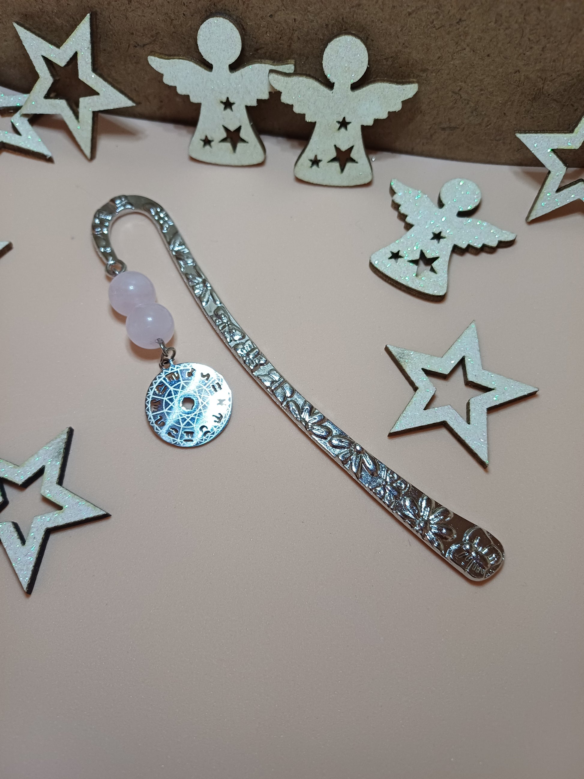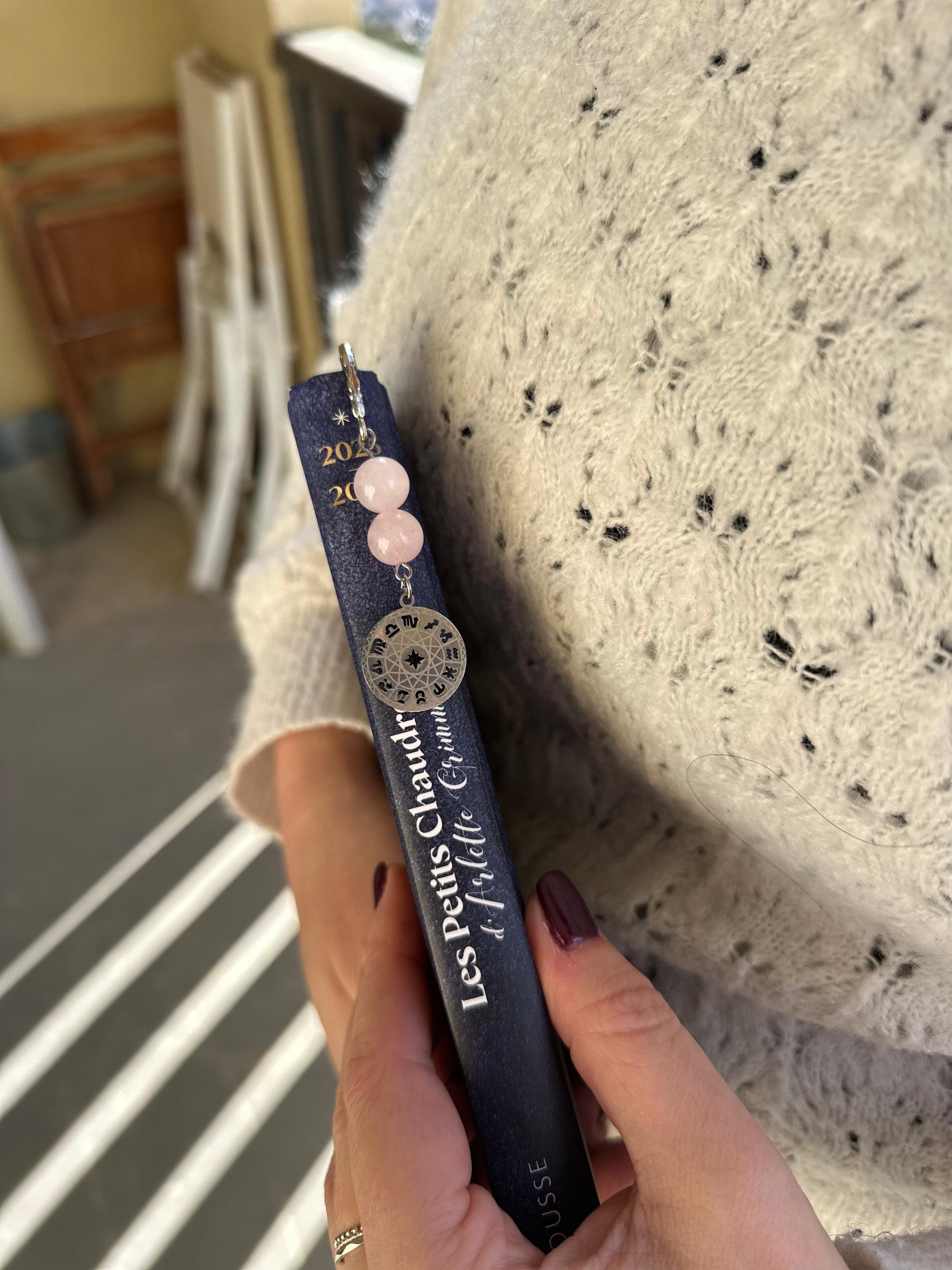 Marque-page en pierres naturelles – Quartz Rose & breloque personnalisable
